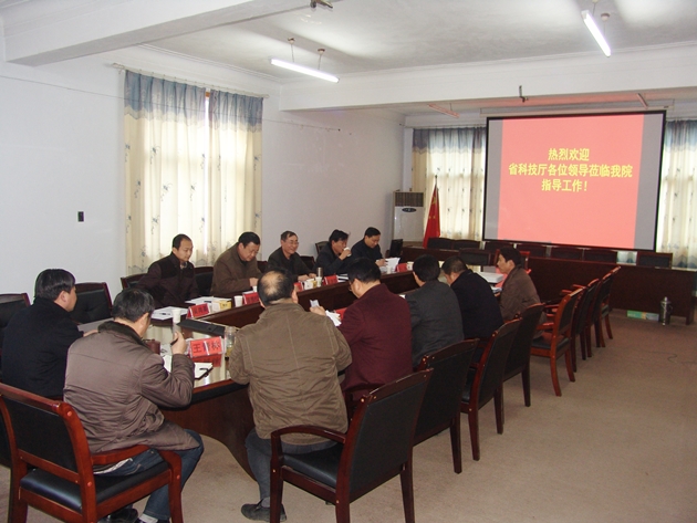 院黨委書(shū)記韓勛來(lái)代表市農科院對夏培臣一行的到來(lái)表示熱烈的歡迎,對省科技廳多年來(lái)對我院的大力支持和幫助表示衷心地感謝。副院長(cháng)祁玉良簡(jiǎn)要介紹了本院的基本情況和科研工作情況,并從項目的背景、項目的主要研究?jì)热、項目的預期目標、項目的技術(shù)經(jīng)濟社會(huì )效益等方面背景與意義等方面就擬申報省重大科技專(zhuān)項的4個(gè)備選項目逐一進(jìn)行了重點(diǎn)介紹。