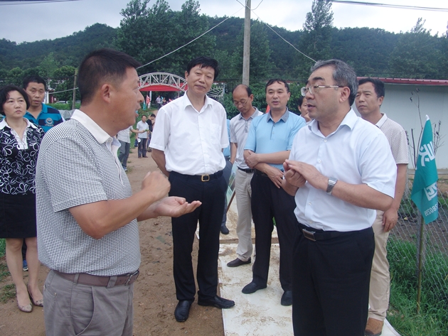 羅山縣是省農科院在全省重點(diǎn)建設的11個(gè)“現代農業(yè)綜合試驗示范縣”之一。19日下午,在我院和羅山縣主要負責同志的陪同下,張新友不顧途中勞累,一下火車(chē)就前往羅山縣考察院縣共建情況。在靈山鎮靈豐園高效農業(yè)科技示范園,張新友實(shí)地察看了園區內葡萄、梨、冬棗等果樹(shù)長(cháng)勢情況,聽(tīng)取了家庭農場(chǎng)負責人的情況匯報。該示范園采用省農科院提供的綠色病蟲(chóng)害防控技術(shù),建成了千畝葡萄和千畝草莓采摘園,百畝冬棗、百畝梨、百畝美國大櫻桃采摘園和百畝花卉觀(guān)賞園,目前各類(lèi)作物長(cháng)勢良好、產(chǎn)量豐碩、效益喜人,已成為葡萄避雨栽培、梨樹(shù)高密度省工栽培和設施高效農業(yè)技術(shù)的展示窗口。