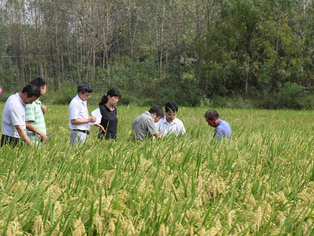 9月13日上午,來(lái)自我院與信陽(yáng)農林學(xué)院、市農業(yè)局的專(zhuān)家,對信陽(yáng)農科種業(yè)有限公司承擔、光山縣羅陳鄉周灣村組織實(shí)施的河南省科技惠民項目“豫南水稻‘秈改粳’高產(chǎn)與安全種植技術(shù)示范推廣”千畝粳稻示范基地進(jìn)行了現場(chǎng)測產(chǎn),專(zhuān)家組按照田間試驗示范測產(chǎn)辦法田間測產(chǎn)表明,理論畝產(chǎn)量達到829.74公斤,85折后畝產(chǎn)705.27公斤,高出項目設計目標55.27公斤。