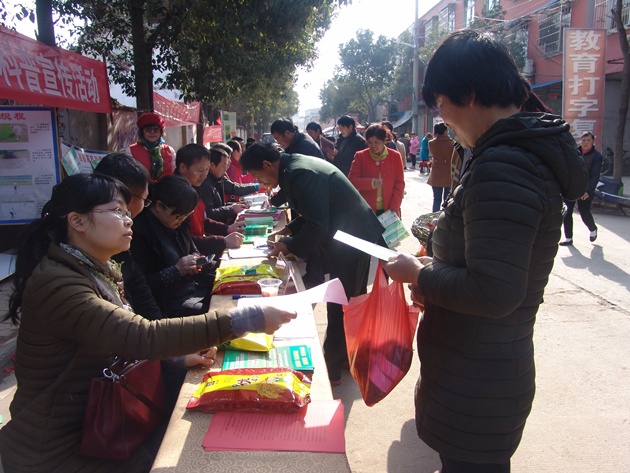 3月1日,農歷二月初四,恰逢浉河區吳家店鎮農村大集,我院在該鎮開(kāi)展了河南省科技傳播工程項目豫南“秈改粳”理論與技術(shù)推廣的科普活動(dòng)。項目主持人、市科技特派員、我院宋世枝研究員率本院部分水稻、植保等方面專(zhuān)家參加了活動(dòng)。市農技站、浉河區農業(yè)局負責同志與技術(shù)人員,信陽(yáng)農科種業(yè)、天津天隆科技信陽(yáng)分公司、河南國豪種業(yè)、信陽(yáng)興隆種植專(zhuān)業(yè)合作社等涉農企業(yè)也參加了此次活動(dòng)。