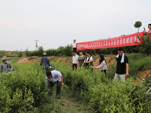 在新縣大地公司,現場(chǎng)演示了茶園小型多功能耕作機,集修剪、臺刈、采摘三機一體的新型背負式茶園管理機等茶園管理機械,這些新型機械輕便靈活、易于操作,提高工作效率近4倍,非常適宜在我市茶園推廣應用。與會(huì )人員對此表現出了濃厚的興趣,紛紛表示將致力于這些新型機械的推廣應用。觀(guān)摩會(huì )上,呂立哲一行與新縣茶辦、八里畈鎮以及公司主要負責人進(jìn)行了深入交流,就做強茶產(chǎn)業(yè)、實(shí)現“精準扶貧”提出了具體建議和技術(shù)措施;院茶葉所副所長(cháng)趙豐華副研究員親自示范了茶園綠色防控技術(shù)。