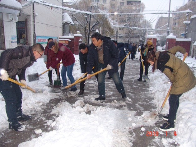 1月4日上午,我院組織全院力量開(kāi)展集中行動(dòng),全力清掃機關(guān)院、家屬區主干道的積雪;清除中心花園、綠化帶景觀(guān)樹(shù)上的冰雪,防止壓斷壓折樹(shù)枝;對壓折的樹(shù)枝進(jìn)行清除,及時(shí)消除了交通阻礙。本次集中行動(dòng),全院從領(lǐng)導干部到普通職工,無(wú)論級別高低,無(wú)論男女老少,大家都積極的加入到鏟雪隊伍,投身到鏟雪除冰的行動(dòng)中。
