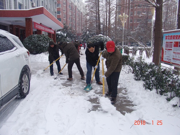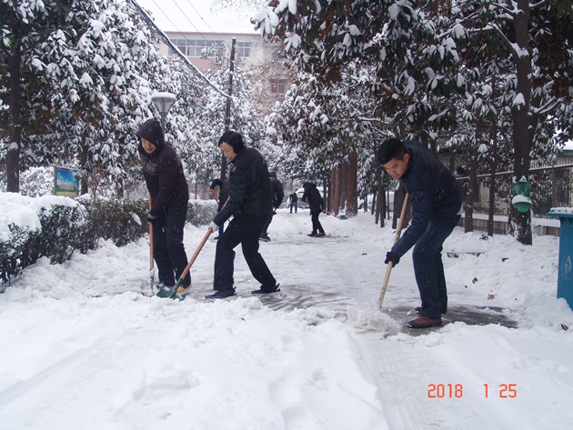 1月24日,2018年的第二場(chǎng)雪如期而至,經(jīng)過(guò)一天一夜地面已有近20公分的積雪,景觀(guān)樹(shù)木再次披上“冰甲”。針對當前的雨雪嚴寒天氣,我院主動(dòng)作為,積極行動(dòng),全力以赴做好除雪保暢通工作。25日,院領(lǐng)導班子及100多名干部職工投身到鏟雪除冰行動(dòng)中,對院辦公區、院家屬區干道的積雪進(jìn)行了鏟除,對行道樹(shù)、景觀(guān)樹(shù)上的冰雪進(jìn)行了清理。