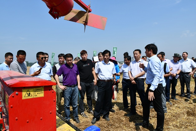 6月3日上午,由省農科院主辦、我院與平橋區政府承辦的河南省“四優(yōu)四化”科技支撐行動(dòng)計劃優(yōu)質(zhì)花生專(zhuān)項“花生農機農藝融合生產(chǎn)技術(shù)集成與示范”現場(chǎng)觀(guān)摩會(huì )在平橋區肖王鄉保豐種植專(zhuān)業(yè)合作社召開(kāi),省農科院黨委書(shū)記魏蒙關(guān)、副院長(cháng)衛文星,省農機局局長(cháng)凌中南、總工程師蔣興寧,市政府副市長(cháng)張明春等領(lǐng)導出席會(huì )議,我市及駐馬店、南陽(yáng)、開(kāi)封、新鄉、商丘、濮陽(yáng)、周口、鶴壁等地市的農業(yè)科研人員、合作社負責人及種植大戶(hù)代表100多人參加了會(huì )議。