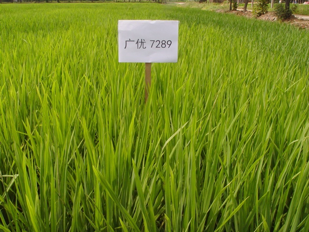 廣優(yōu)7289(審定編號:豫審稻20180001)屬三系雜交秈稻,株高124.6-131.2厘米,全生育期147天。平均畝有效穗17.2-22.8萬(wàn)穗,每穗總粒數172.2-175.7粒,結實(shí)率73.5-83.6%,千粒重30.2-31.0克。2015年起連續兩年參加豫南稻區中秈稻區域試驗,平均畝產(chǎn)稻谷619.5公斤,比對照豐兩優(yōu)四號平均增產(chǎn)3.3%,達極顯著(zhù)水平。2017年參加生產(chǎn)試驗,平均畝產(chǎn)615.8公斤,比對照豐兩優(yōu)四號增產(chǎn)6.1%。經(jīng)安徽省農業(yè)科學(xué)院植物保護與農產(chǎn)品質(zhì)量安全研究所對稻瘟病抗性鑒定,廣優(yōu)7289綜合指數病級3級,中抗(MR)稻瘟病,為河南省水稻審定品種以來(lái)稻瘟病抗性最好的品種之一。該品種稻米加工特性好,米飯軟硬適中,適口性好,適宜豫南秈稻區種植。