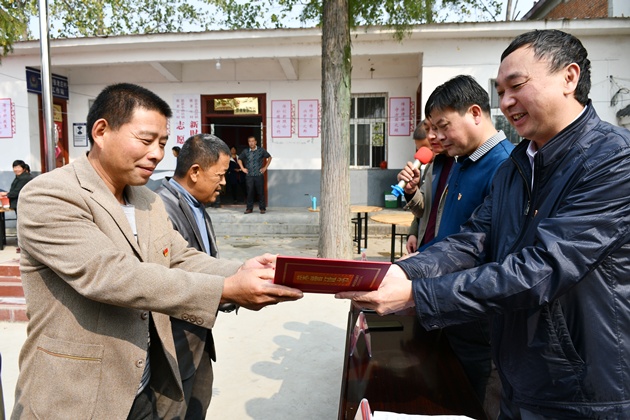 抵達張老莊時(shí)村里正在舉辦第八屆孝善敬老活動(dòng),段仁周院長(cháng)受邀為熱心公益好村民、好女兒好媳婦、改增先進(jìn)戶(hù)獲得者頒發(fā)獎狀,并隨即發(fā)表了熱情洋溢的講話(huà)。他表示,今天是全國扶貧日,也恰逢九九重陽(yáng)節,很高興能與村里的老人們一起歡度佳節,看到如今張老莊村環(huán)境變美了,產(chǎn)業(yè)發(fā)展了,人們精神了,心里十分欣慰。在多年的對口幫扶工作中,市農科院與張老莊的鄉親們結下了濃厚的友誼,作為幫扶單位,脫貧攻堅我們責無(wú)旁貸,這次來(lái)村里開(kāi)展送科技下鄉活動(dòng),希望對助力全村脫貧攻堅有所幫助。相信在各級黨委政府的關(guān)心支持下,在大家的共同的努力下,張老莊村一定能贏(yíng)得脫貧攻堅戰的勝利。