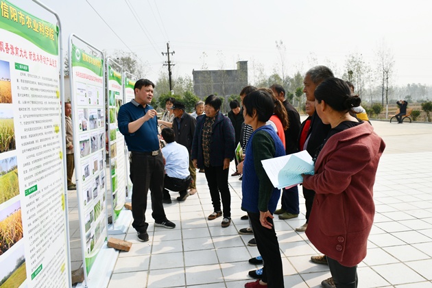 孝善敬老活動(dòng)一結束,村民們就來(lái)到了本次送科技下鄉活動(dòng)的舉辦地——村文化廣場(chǎng),在一幅幅圖文并茂的展板前,專(zhuān)家們向村民講解豫南麥區弱筋小麥高效生產(chǎn)技術(shù)、油菜綠色高產(chǎn)高效技術(shù)、再生稻栽培技術(shù)要點(diǎn)、秋栽香菇標準化栽培技術(shù)、平菇培養料發(fā)酵后熟化栽培關(guān)鍵技術(shù)、麥田雜草防治要點(diǎn)、油菜主要病蟲(chóng)害防治要點(diǎn)以及稻蝦共作生產(chǎn)模式,耐心細致地解答他們生產(chǎn)當中遇到的種種疑難問(wèn)題,現場(chǎng)氣氛熱烈。隨后,專(zhuān)家們來(lái)到田間地頭,手把手指導小麥播種、蔬菜生產(chǎn)和再生稻后期管理,解決村戶(hù)生產(chǎn)中的難題;顒(dòng)現場(chǎng)共發(fā)放各類(lèi)農業(yè)生產(chǎn)技術(shù)資料2000份,優(yōu)質(zhì)弱筋小麥品種500斤,以及上百斤黃心菜、上海青、香菜等蔬菜種子。近300名村民參加了本次活動(dòng)。