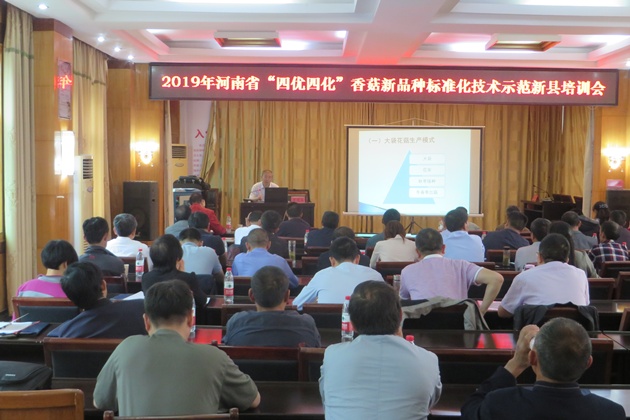 河南省“四優(yōu)四化”科技支撐行動(dòng)計劃香菇新品種標準化技術(shù)培訓暨現場(chǎng)觀(guān)摩會(huì )在新縣召