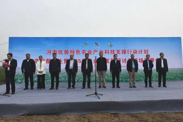 10月12日,由河南省農科院、國家花生產(chǎn)業(yè)技術(shù)體系、河南省花生產(chǎn)業(yè)技術(shù)體系主辦,息縣人民政府承辦,我院協(xié)辦的河南優(yōu)勢特色農業(yè)產(chǎn)業(yè)科技支撐行動(dòng)計劃高油酸花生豫花65號產(chǎn)業(yè)化發(fā)展研討?hù)攥F場(chǎng)觀(guān)摩會(huì )在息縣成功召開(kāi)。河南省農科院副院長(cháng)衛文星河南種業(yè)集團董事長(cháng)侯傳偉,信陽(yáng)市委常委、副市長(cháng)李俊,院黨組書(shū)記李杰、院長(cháng)鐘思志,息縣縣委書(shū)記管保臣、代縣長(cháng)鄭春等出席會(huì )議。