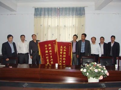 510,息縣小茴店鎮張老莊村干部群眾一行五人把寫(xiě)有“無(wú)私援助獻愛(ài)心真情幫扶促發(fā)展”、“送科技下鄉興農派干部入村富民”字樣的兩面錦旗送到我院,感謝我院選派干部到該村擔任黨組織第一書(shū)記三年來(lái)對該村的大力援助。院長(cháng)段仁周、副院長(cháng)劉祥臣親切會(huì )見(jiàn)了張老莊村到訪(fǎng)的干部群眾。段仁周院長(cháng)表示,雖然村黨組織第一書(shū)記工作任期已經(jīng)結束,但市農科院與張老莊村建立的緊密聯(lián)系不能斷,建立起來(lái)的深厚情誼不會(huì )淡,市農科院仍將一如繼往地關(guān)心支持張老村的經(jīng)濟社會(huì )發(fā)展,為張老村的各項事業(yè)發(fā)展提供力所能及的幫助。
