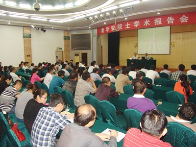 9月5日下午,謝華安還以《秈型雜交水稻恢復系明恢63的創(chuàng )制與利用》為題,從恢復系在雜交水稻育種上的應用、創(chuàng )制技術(shù)、抗性鑒定、篩選技術(shù)等方面為我市廣大農業(yè)科研人員做了一場(chǎng)學(xué)術(shù)報告。