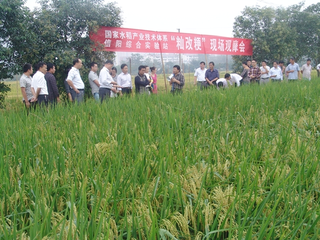 9月25日,國家水稻產(chǎn)業(yè)技術(shù)體系信陽(yáng)綜合試驗站召開(kāi)“秈改粳”現場(chǎng)觀(guān)摩會(huì ),試驗站團隊成員、技術(shù)骨干和有關(guān)技術(shù)人員、河南農業(yè)大學(xué)、河南省農業(yè)科學(xué)院、河南省農技推廣總站、南陽(yáng)市農業(yè)局、駐馬店市農科院、信陽(yáng)各縣區承擔“秈改粳”工作的負責同志及技術(shù)人員、部分種田大戶(hù)代表100余人參加了會(huì )議。此前一天,信陽(yáng)綜合試驗站還承辦了信陽(yáng)市2014年“秈改粳”現場(chǎng)觀(guān)摩會(huì ),各縣區分管“秈改粳”工作的縣區長(cháng)、農業(yè)局長(cháng)、科技局長(cháng)、農科所長(cháng)、市涉農單位負責人、“秈改粳”專(zhuān)家組成員參加了會(huì )議,信陽(yáng)市副市長(cháng)曹新生到會(huì )并講話(huà)。